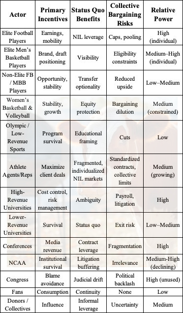 What follows is an analysis of how incentives, power, and law currently structure the system—not an argument for how college athletics ought to function.
